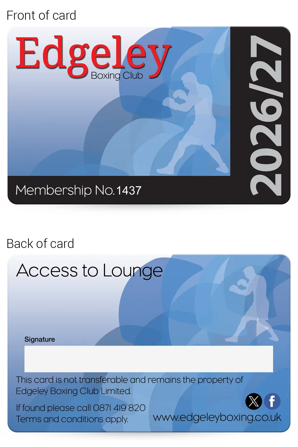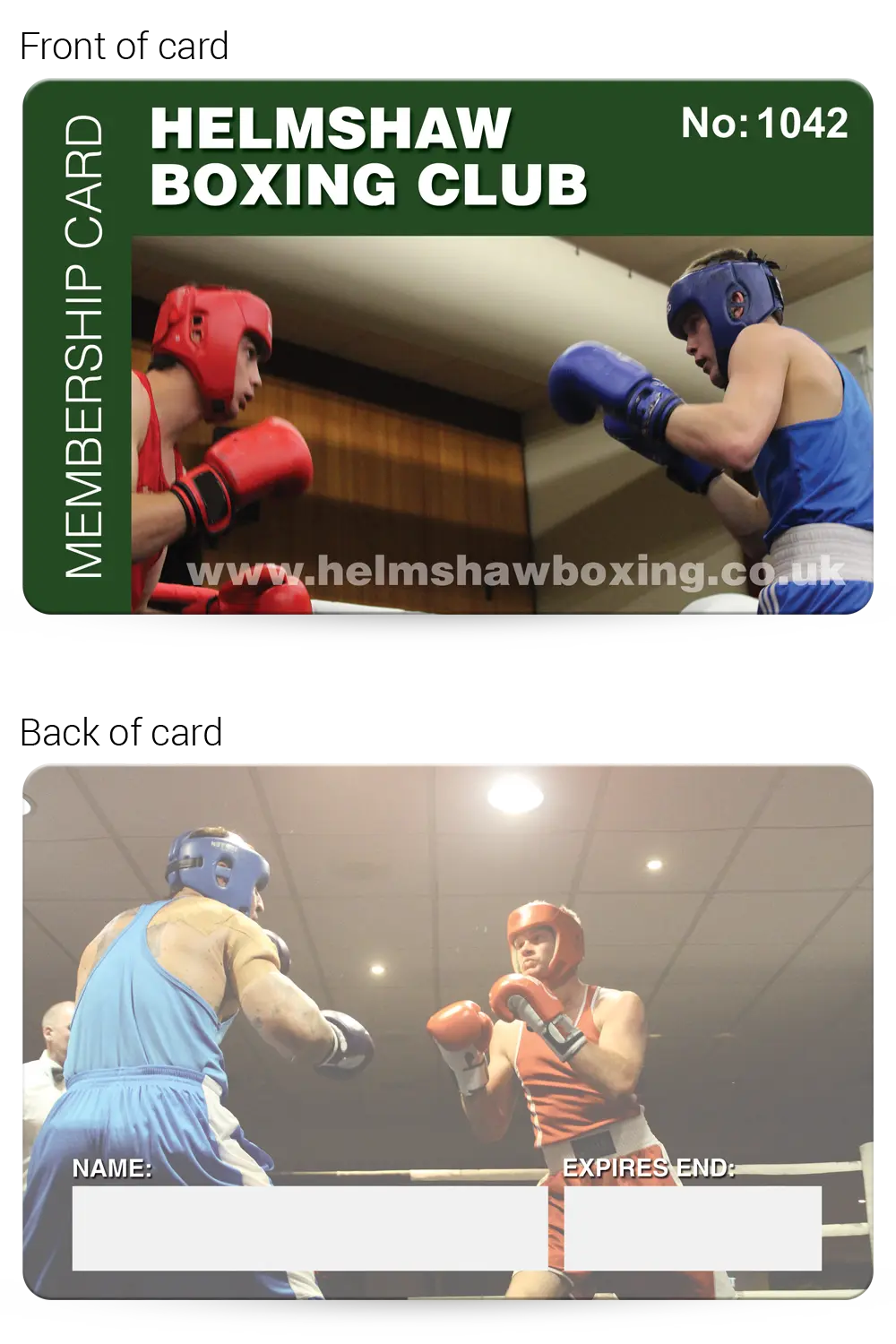 We can print high quality, professional, full colour PVC plastic membership cards for your Boxing club.