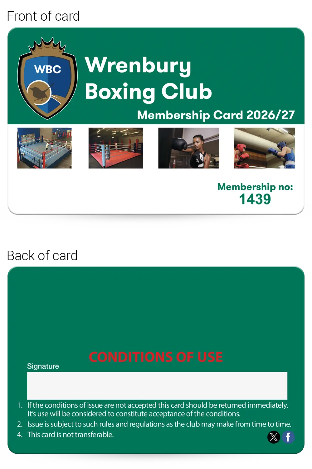 Boxing club membership cards