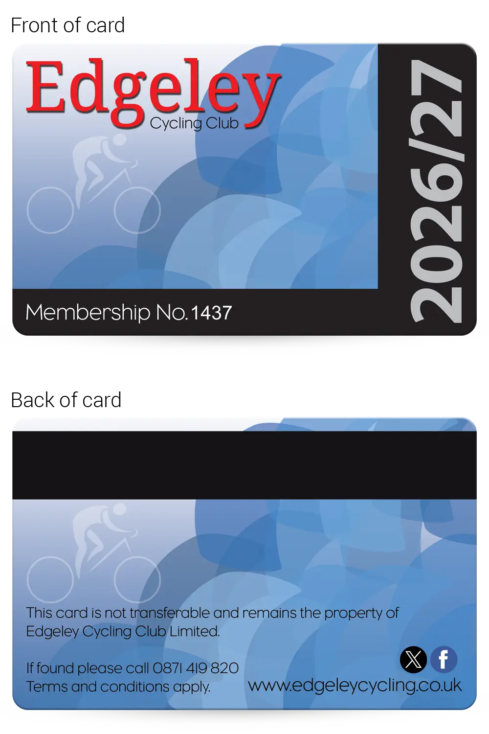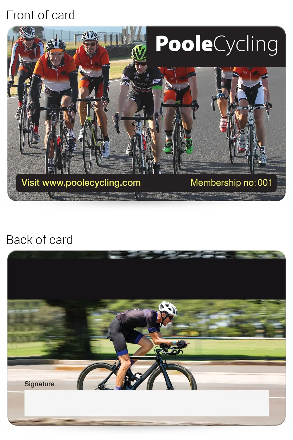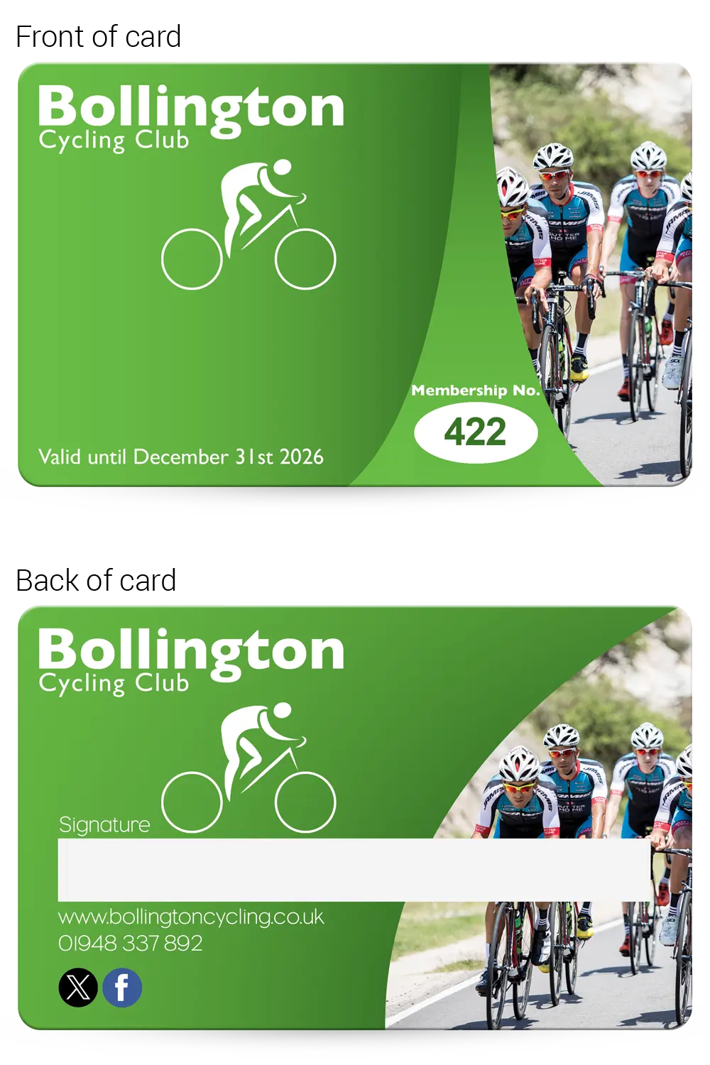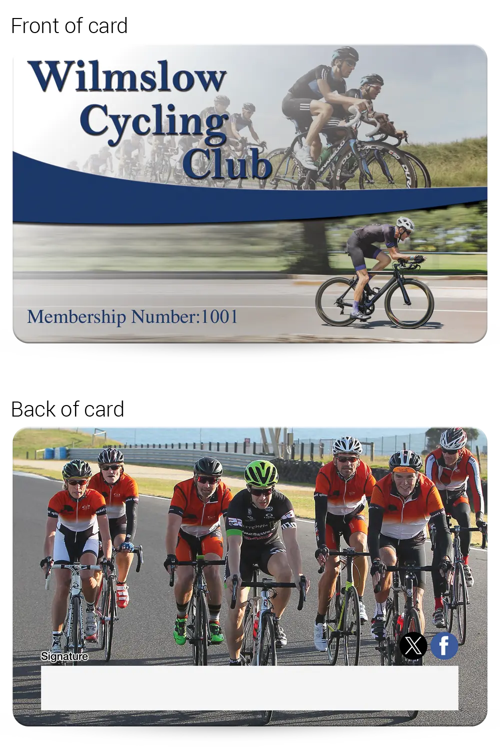 Cycling club membership cards