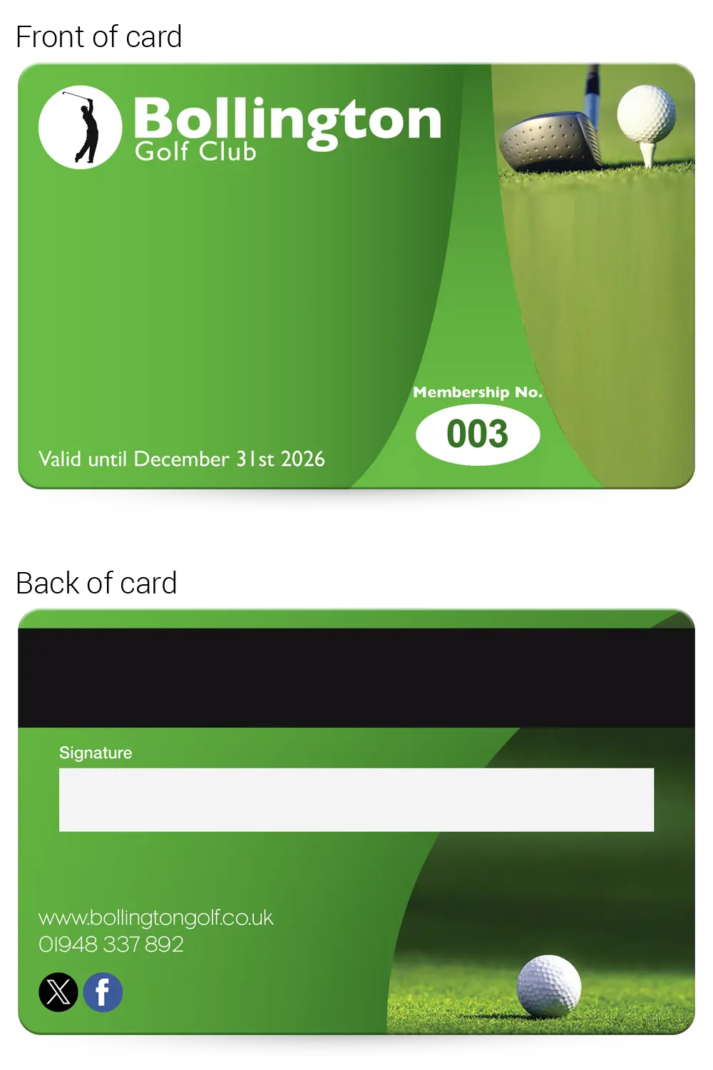 Golf club membership cards