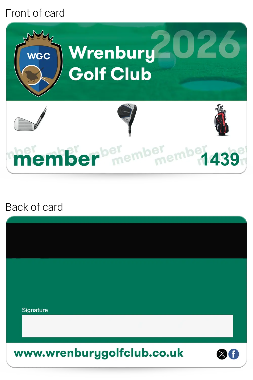 Rugby club membership cards