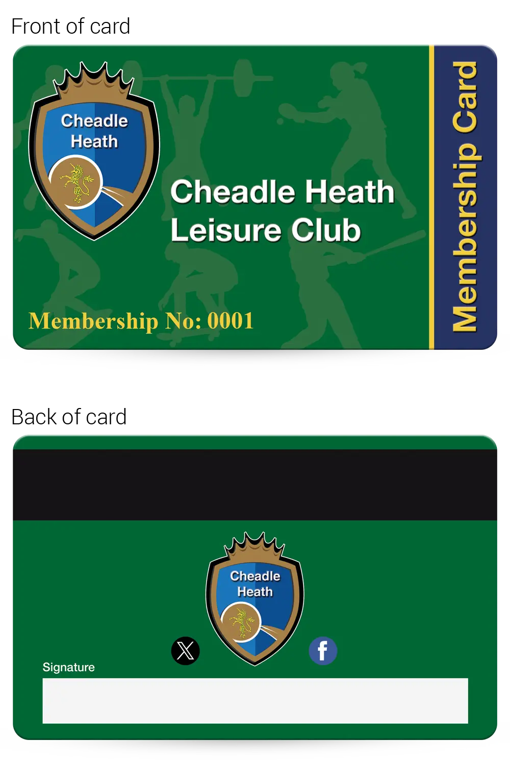 Sports club membership cards