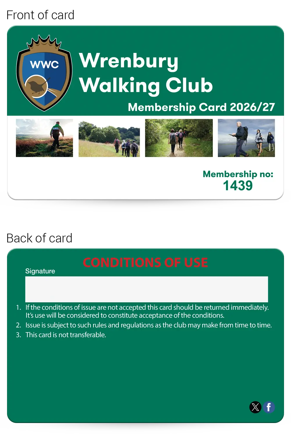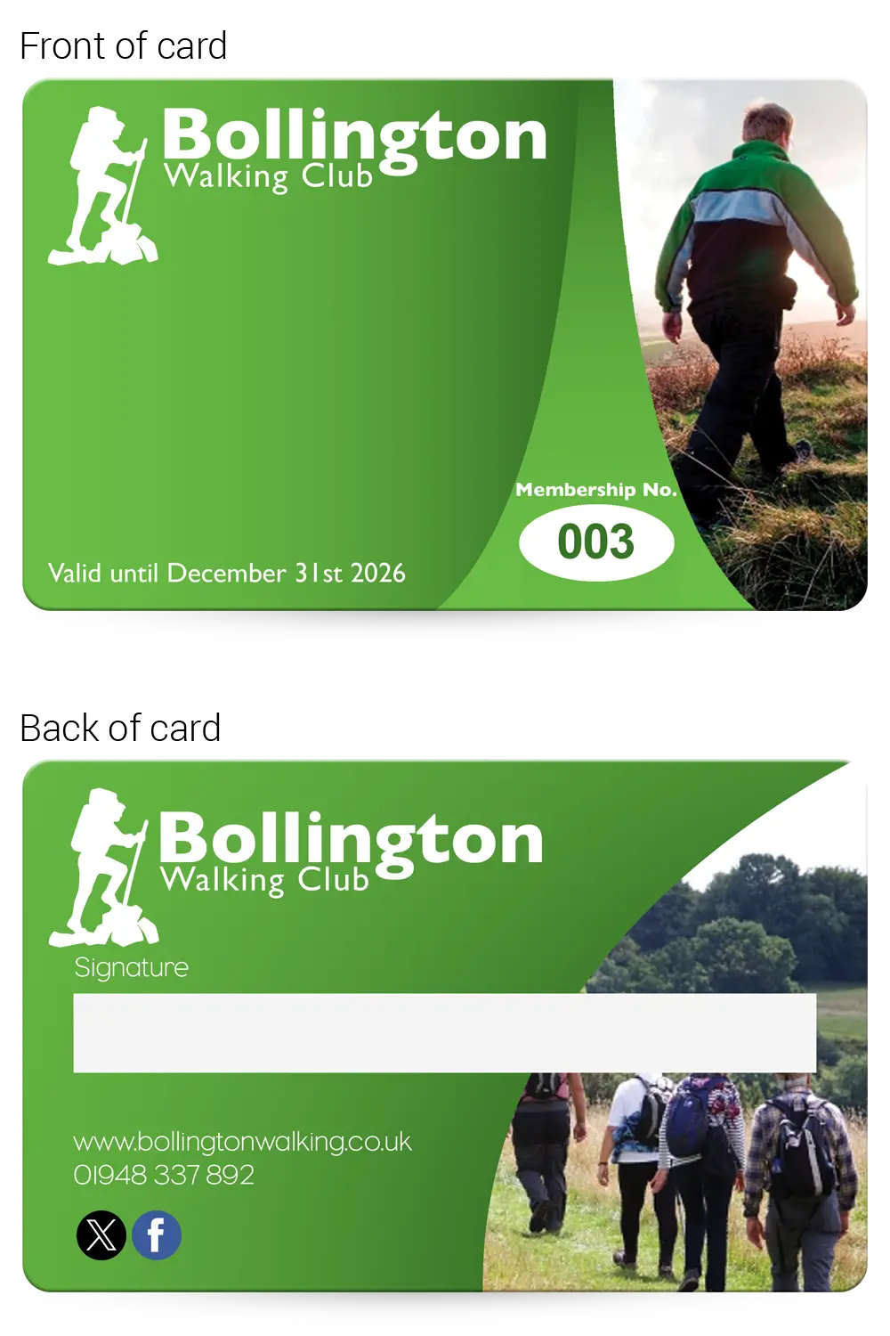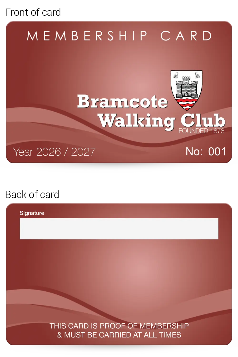 We have lots of Walking Club Membership Card examples that you are welcome to base your design on, complete with your logo and any photographs that you supply, just email them over for no extra cost!